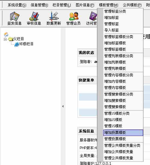 1、登陸后臺-》“模板管理”-》“增加投票模板”,如下圖: