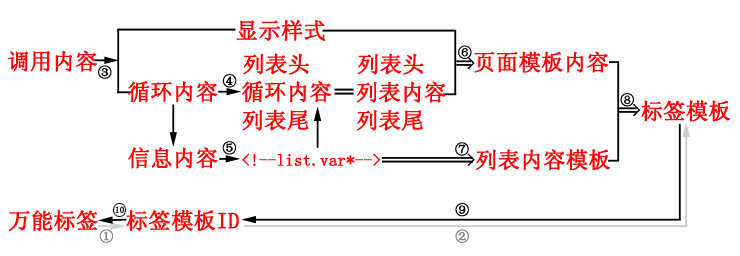 其中循環的信息內容用列表內容變量<!--list.var*-->表示。 |