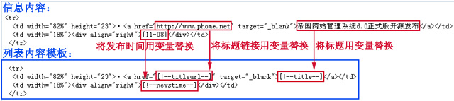 ·確定列表內容模板:即頁面模板內容中<!--list.var*-->表示的信息內容代碼 |