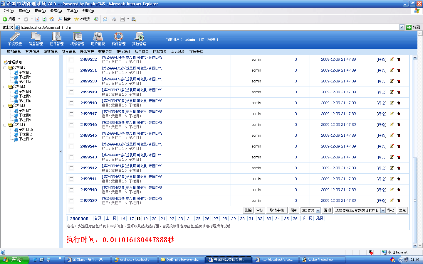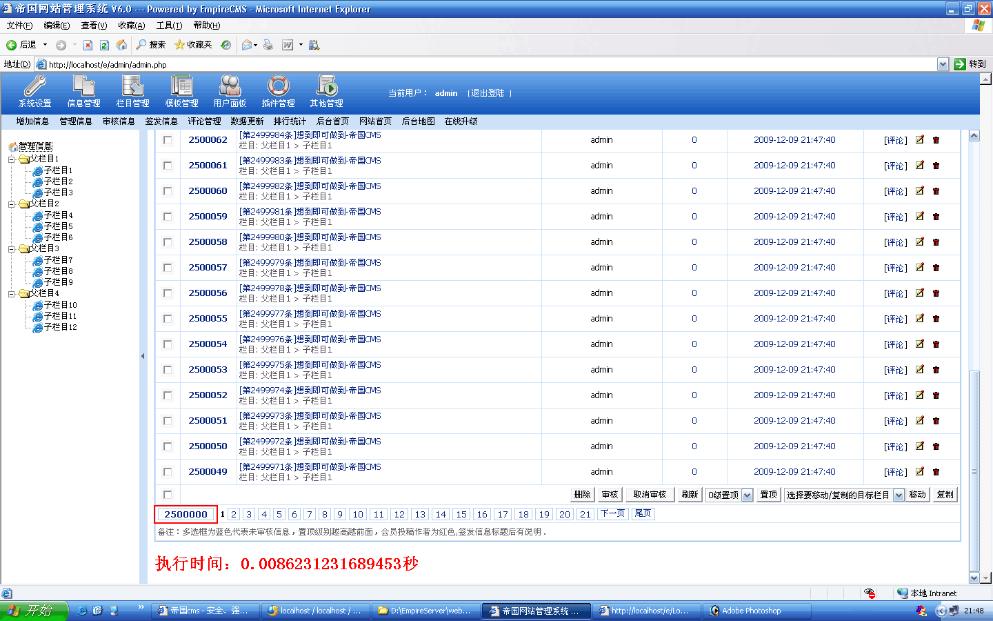![]() 生成過程截圖: ![]() 5000條生成時間:18秒 生成后的欄目目錄: |