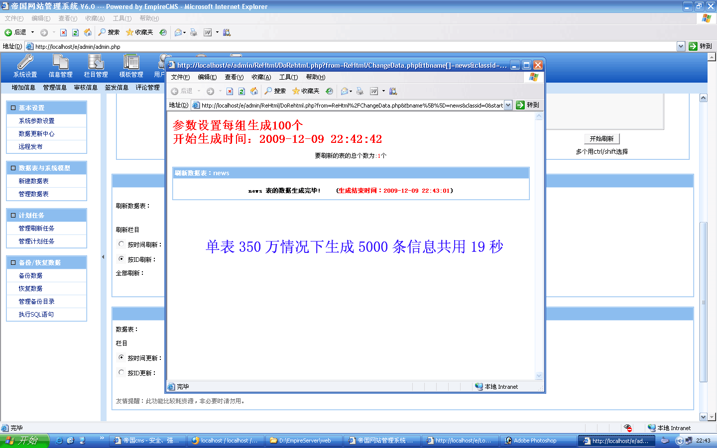 ![]() 生成過程截圖: ![]() 5000條生成時間:19秒 生成后的欄目目錄:(又差點忘了截圖-_-!) |