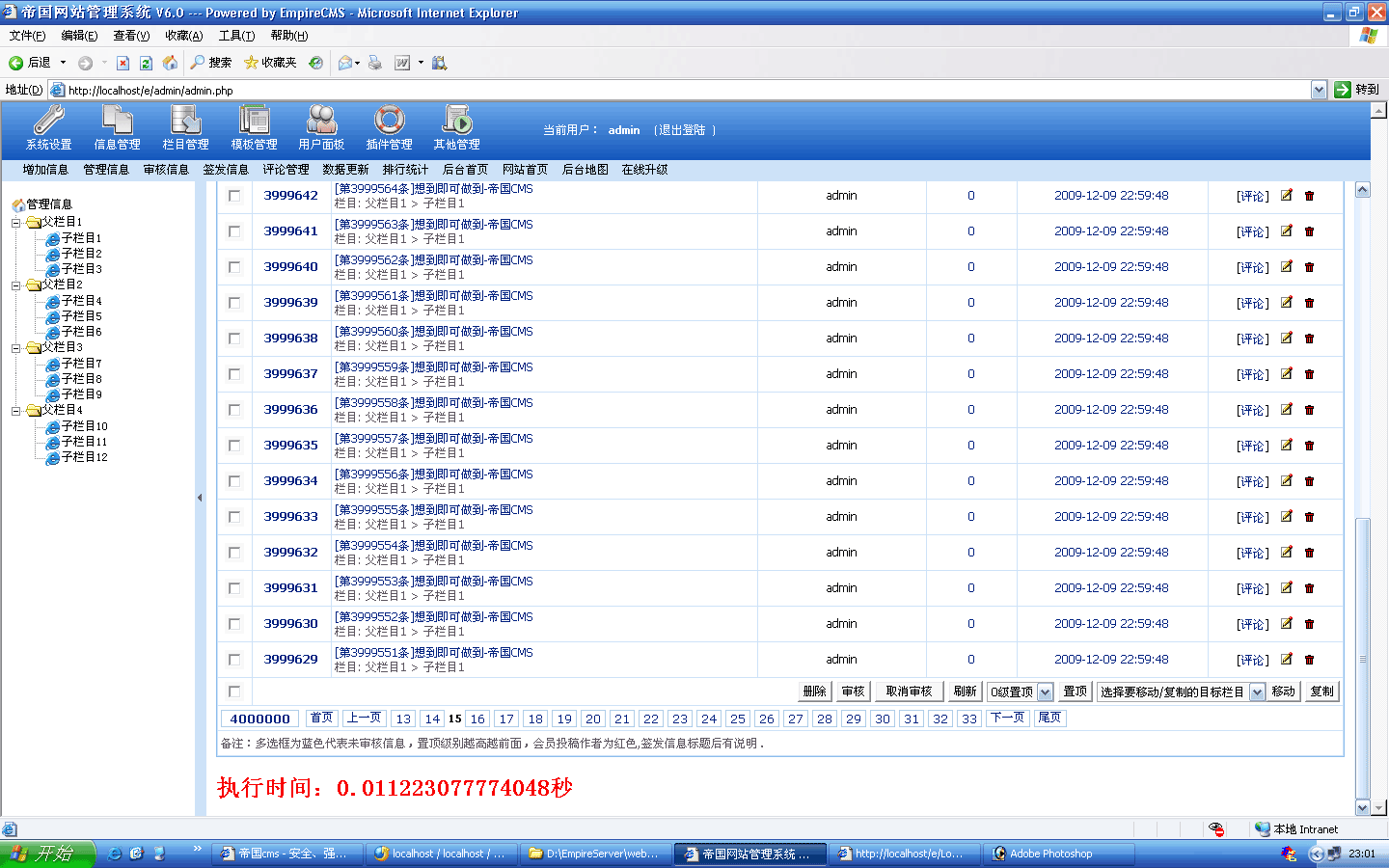 ![]() 生成過程截圖: ![]() 5000條生成時間:19秒 生成后的欄目目錄:(又差點忘了截圖-_-!) |