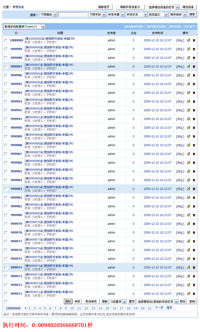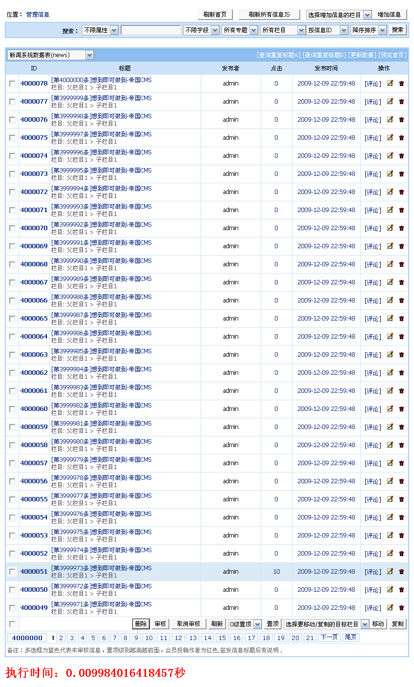 | news9表管理信息列表: |