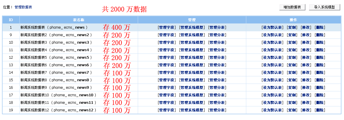 | 2千萬數據、17.3GB數據庫用帝國CMS6.0分表合理存放(第九頁) |