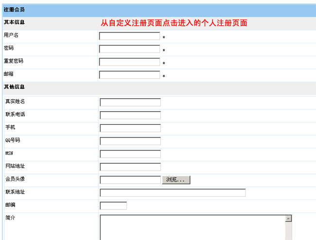 三、增加自定義頁面后,返回“管理自定義頁面”,然后點擊頁面即可看到自定義注冊頁面的效果: