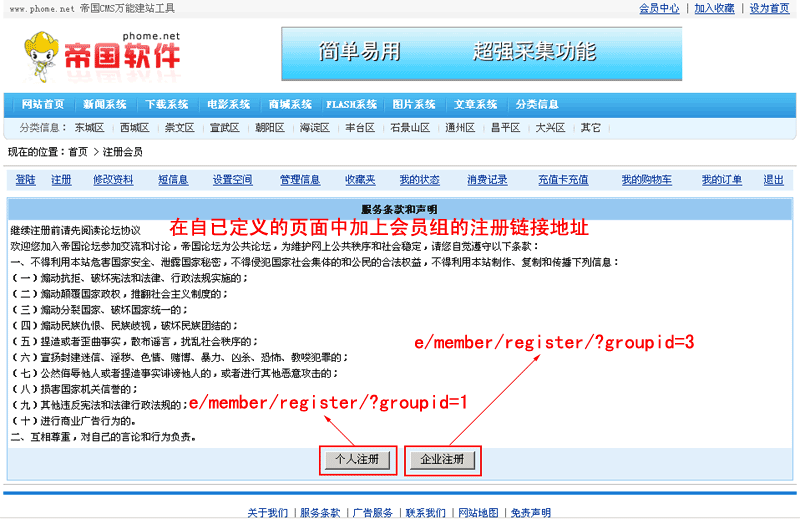 帝國網站管理系統V4.7功能解密 多會員組的注冊導航制作
