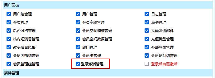 一、增加或修改每次登錄都要激活的用戶組:選擇“登錄后臺需激活”權限。