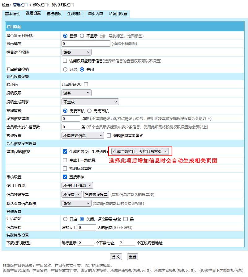 動態(tài)首頁在系統(tǒng)參數(shù)設置里選擇、動態(tài)欄目頁和內容頁在欄目生成選項里選擇。(修改后內容頁地址需要重新更新信息頁地址)
