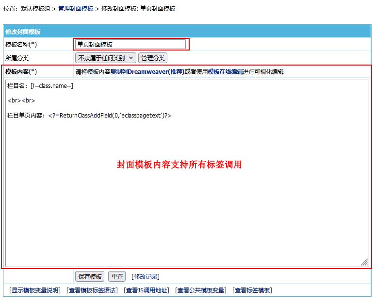 (頁面內(nèi)容支持所有標(biāo)簽和模板公共變量)