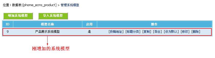 | 2、增加系統(tǒng)模型成功后,轉(zhuǎn)至“管理系統(tǒng)模型”查看已增加的系統(tǒng)模型,如下圖: |