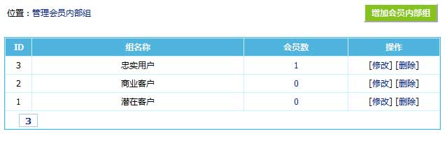 3、管理內部會員組頁面直接能查看組下會員數量,點擊數量可直接進入會員列表進行管理,方便。