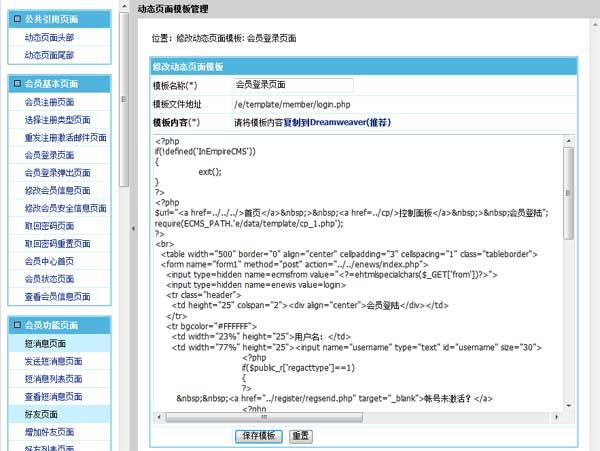 帝國CMS7.0動態頁面模板支持后臺直接修改,更方便
