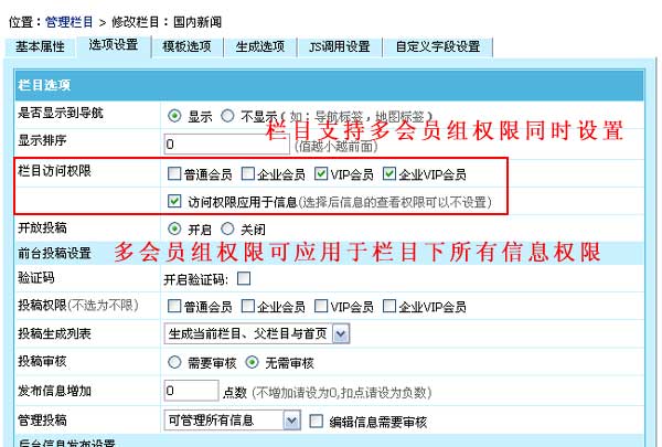 V6.6欄目和信息訪(fǎng)問(wèn)權(quán)限支持限制多會(huì)員組訪(fǎng)問(wèn)