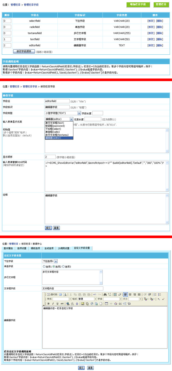 帝國CMS 6.6版新增欄目屬性自定義字段功能,在系統支持信息屬性自定義字段的基礎上,6.6版又新增了欄目屬性自定義字段功能,讓靈活系統更靈活。