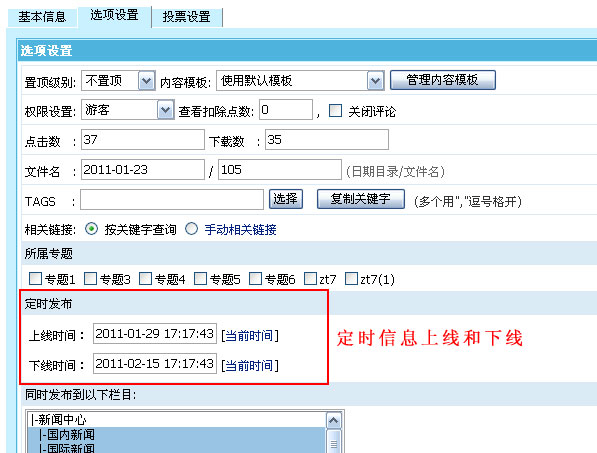 帝國CMS 6.6版新增信息定時上線和下線功能,可預(yù)先增加信息,更方便。