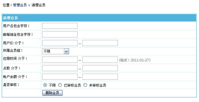 帝國CMS 6.6版新增批量清理會員功能,讓管理會員批量處理更快捷: