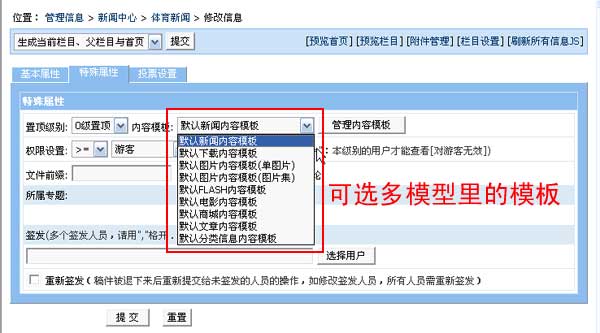 增加信息可選擇多模型里的內(nèi)容模板:這樣多個(gè)相同字段模型只需做一個(gè)內(nèi)容模板