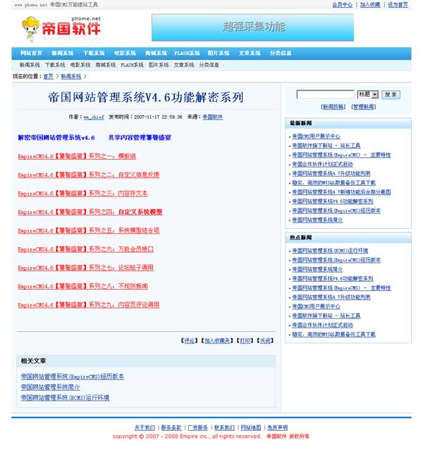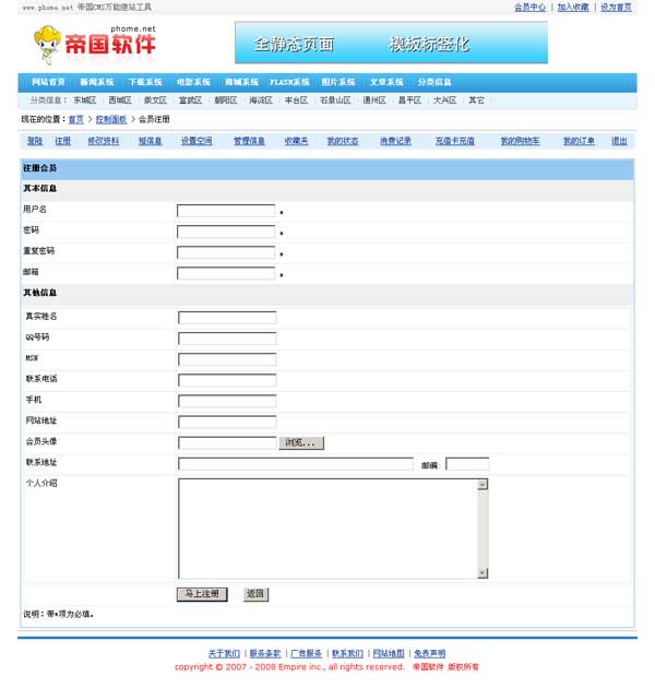 帝國網站管理系統4.7新增功能前臺部分截圖